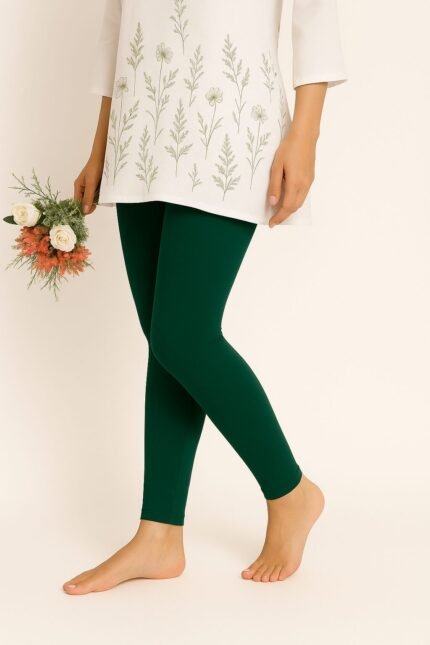 Bottle green ankle length leggings for women