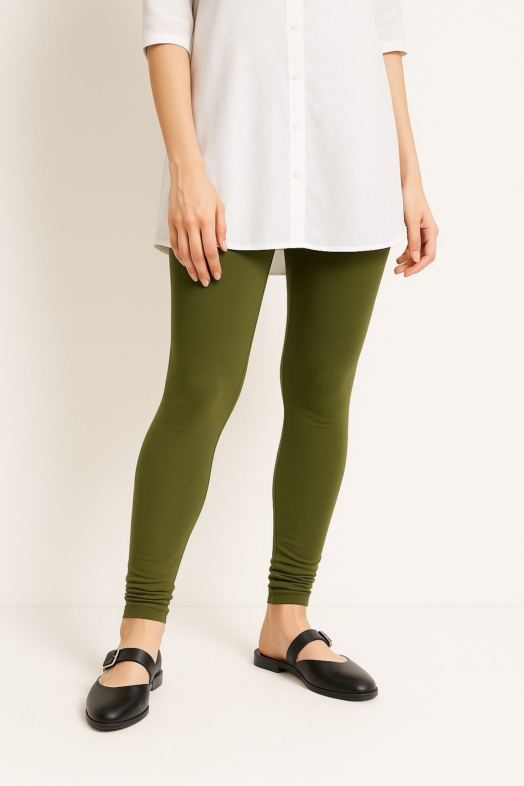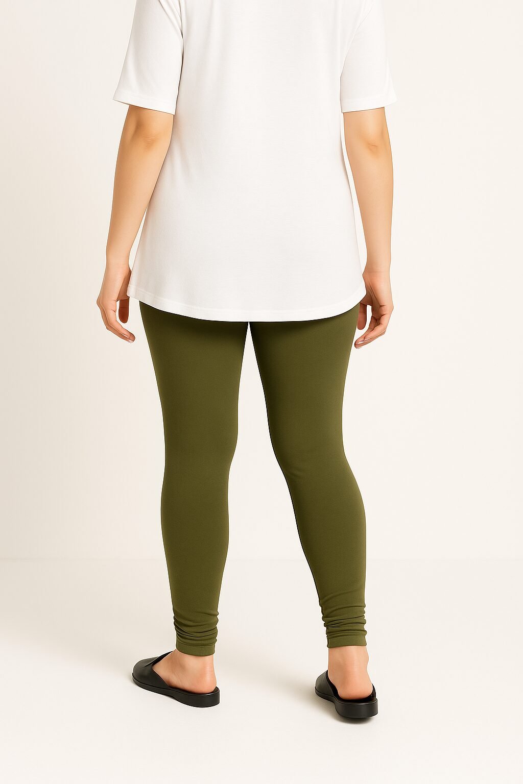 The Army green colour shade pairs beautifully with whites, blacks, beige, floral tops, and ethnic tops . Designed to move with you, these leggings stay in shape even after multiple washes. Whether you’re dressing up for a casual outing or styling for traditional events, these leggings bring confidence and charm to your look.