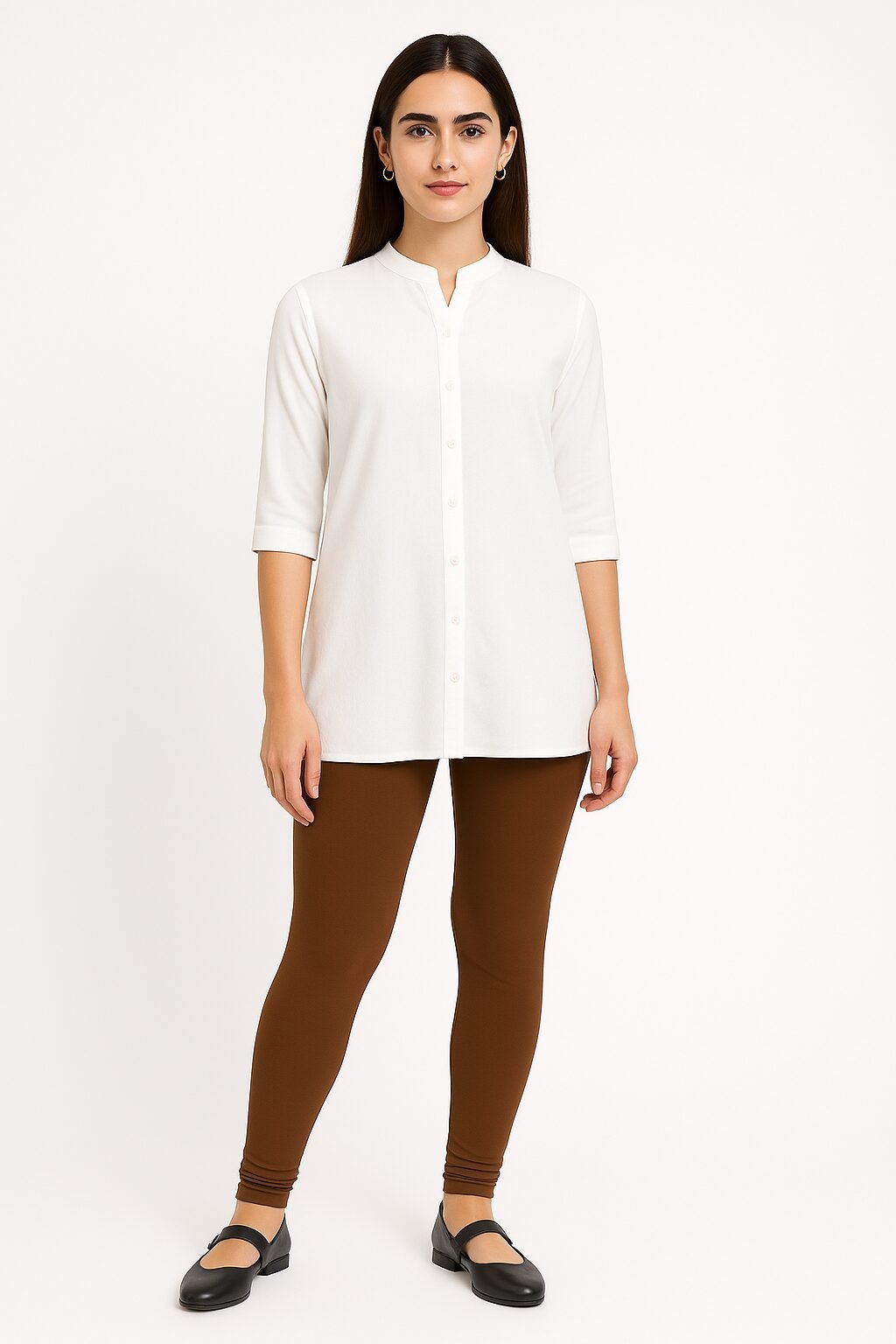 The chocolate brown colour shade pairs beautifully with whites, blacks, beige, floral tops, and ethnic tops . Designed to move with you, these leggings stay in shape even after multiple washes. Whether you’re dressing up for a casual outing or styling for traditional events, these leggings bring confidence and charm to your look.