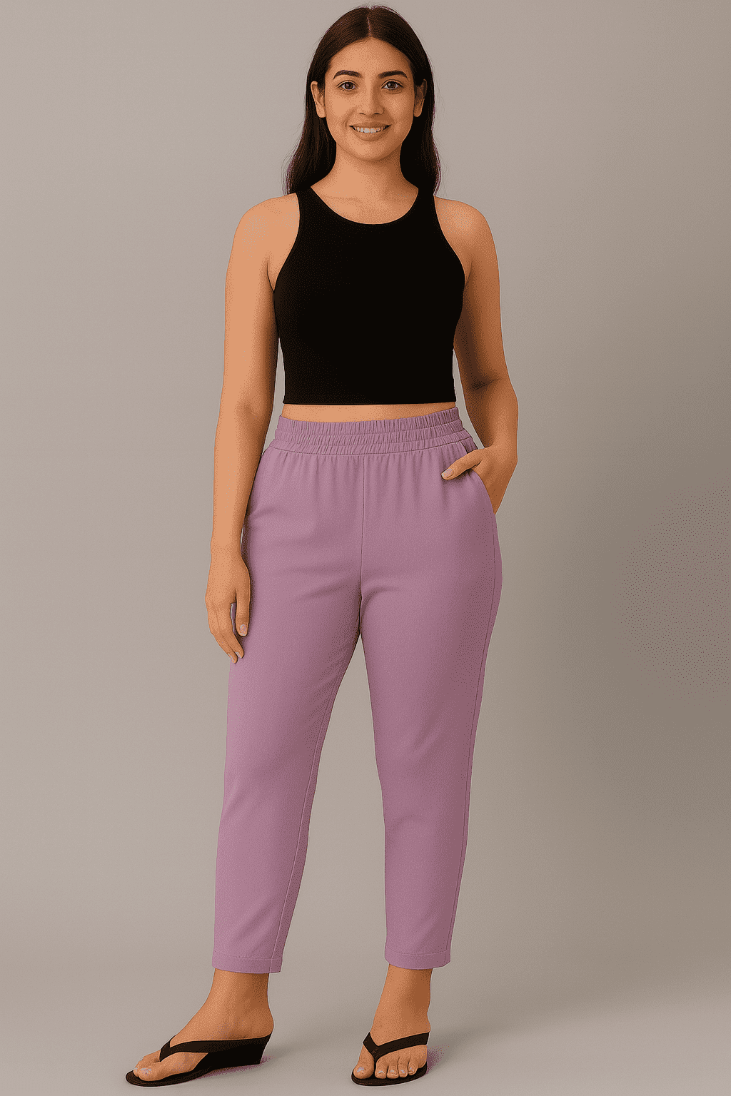 The flattering straight-cut silhouette complements all body types with grace, while the delicate Lavender Mist hue adds a refreshing, subtle charm to your look. This soothing pastel shade pairs beautifully with whites, creams, blacks, florals, and soft-toned kurtis or tops, making it perfect for both casual and semi-formal occasions.