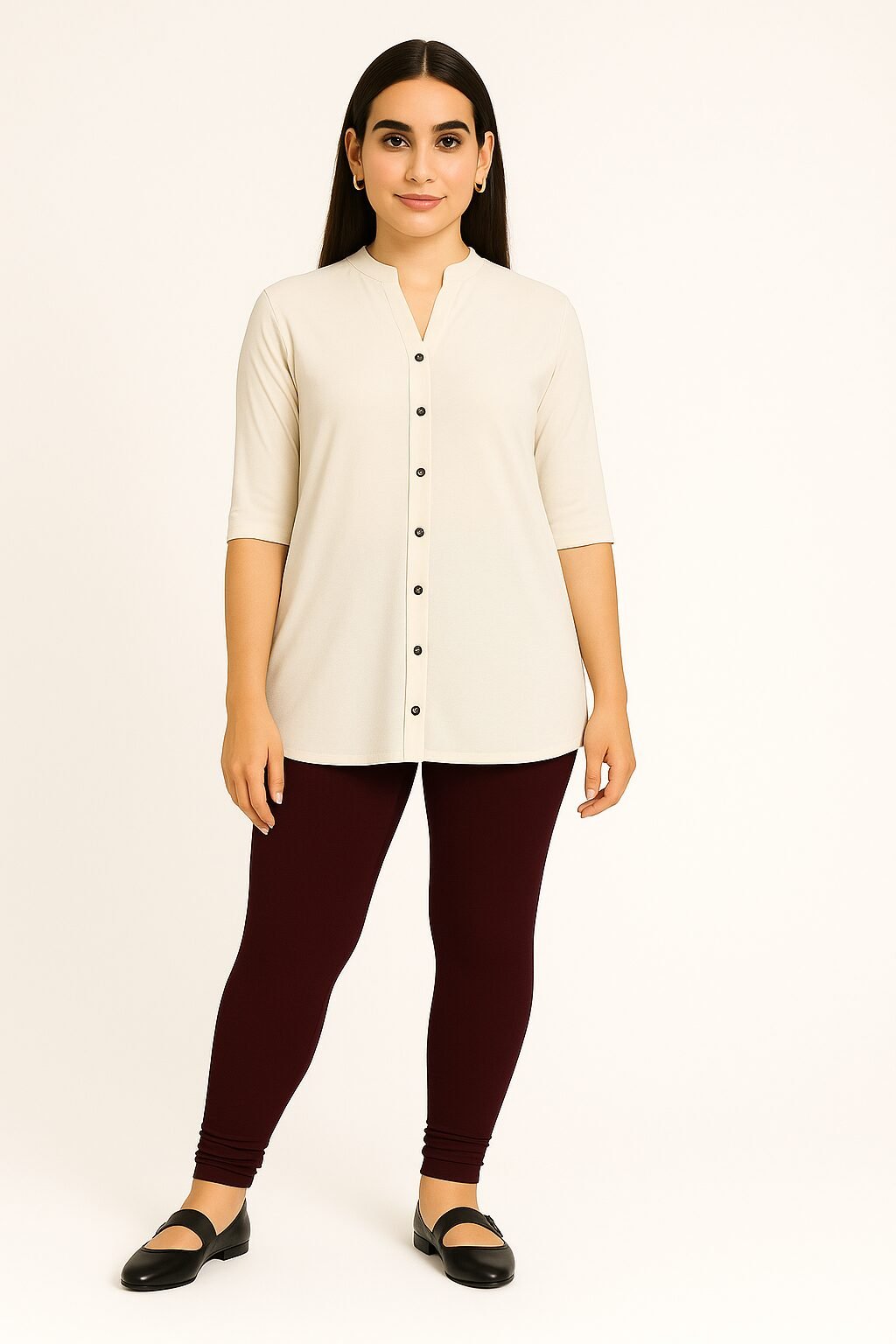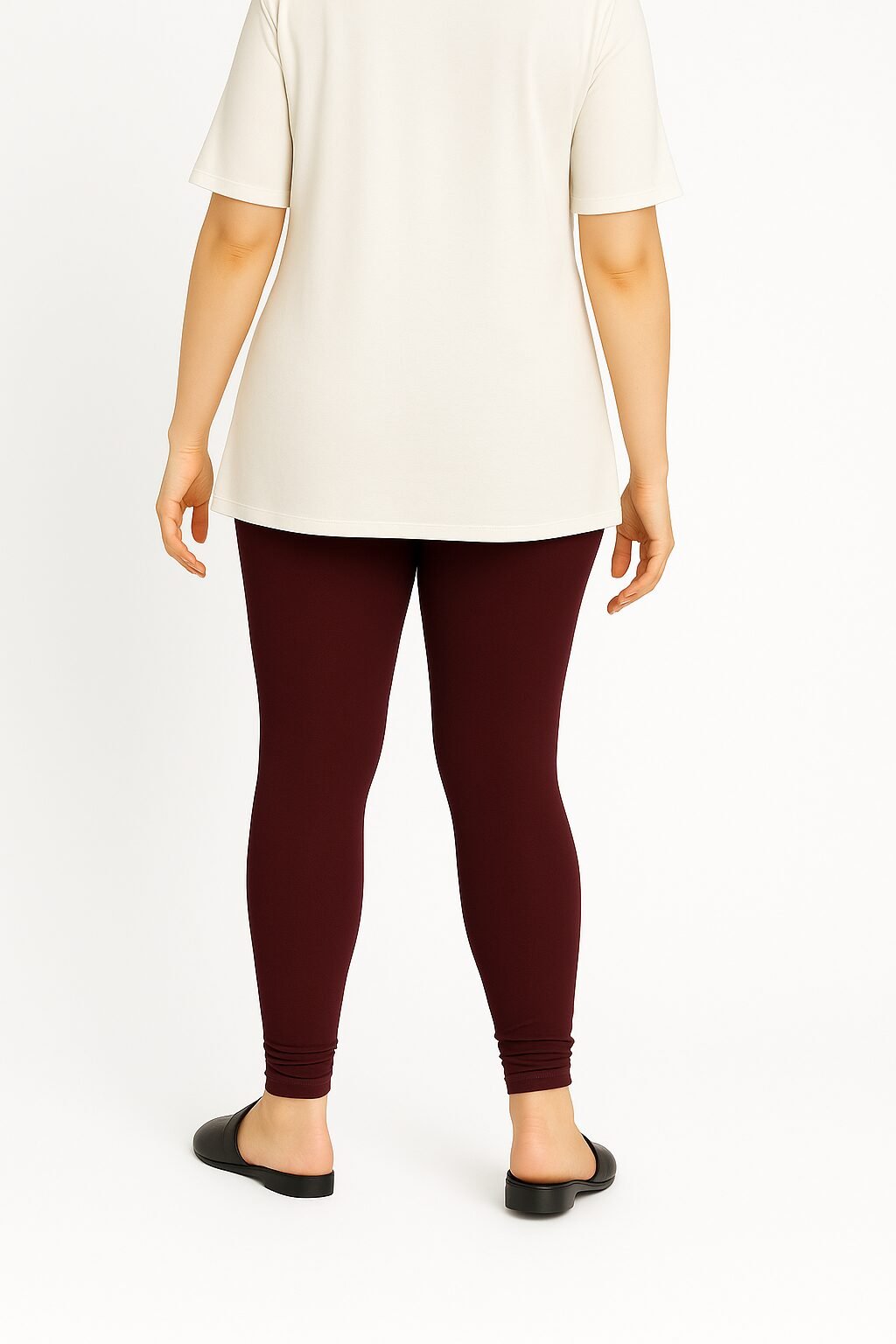 The Dark wine colour shade pairs beautifully with whites, blacks, beige, floral tops, and ethnic tops . Designed to move with you, these leggings stay in shape even after multiple washes. Whether you’re dressing up for a casual outing or styling for traditional events, these leggings bring confidence and charm to your look.