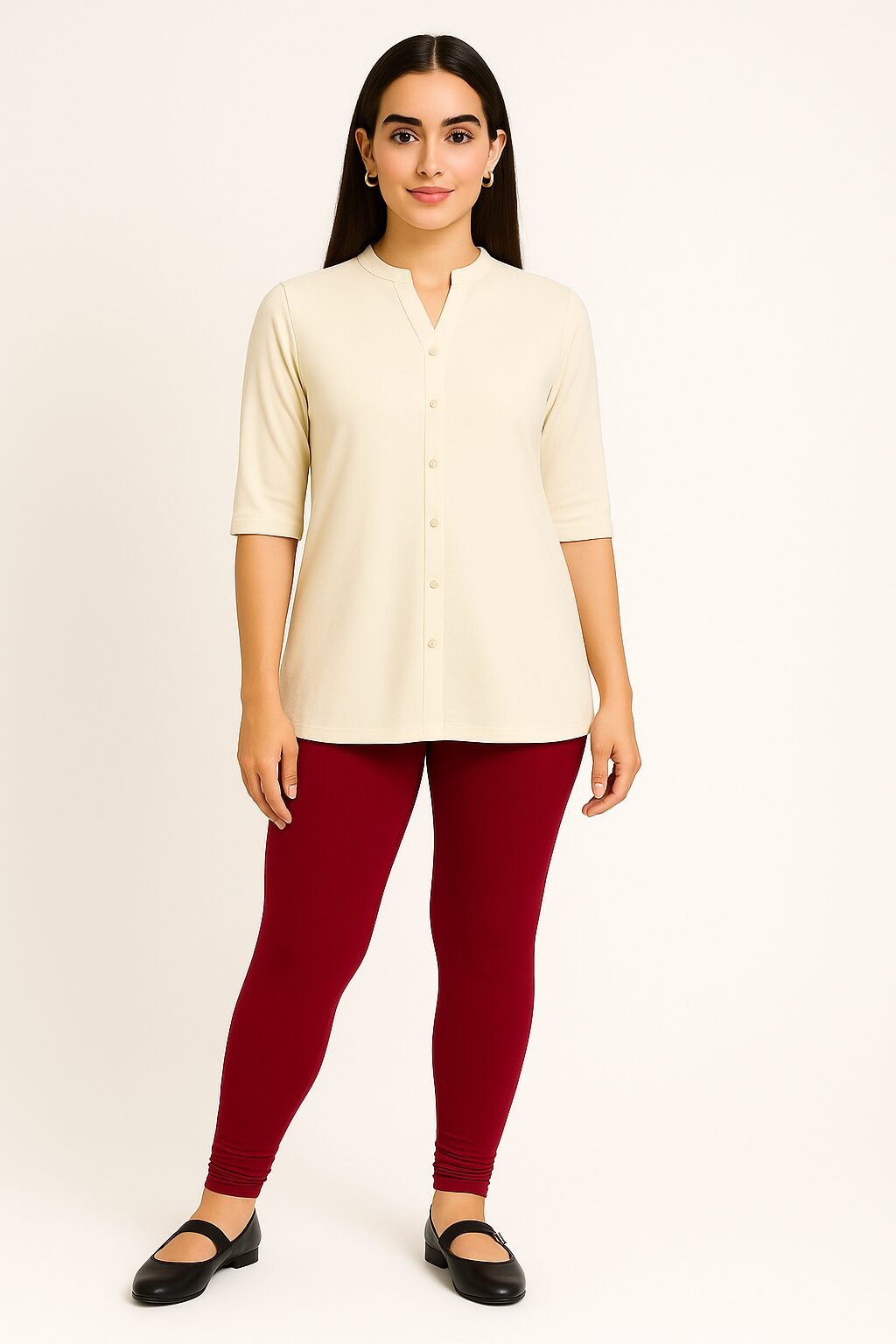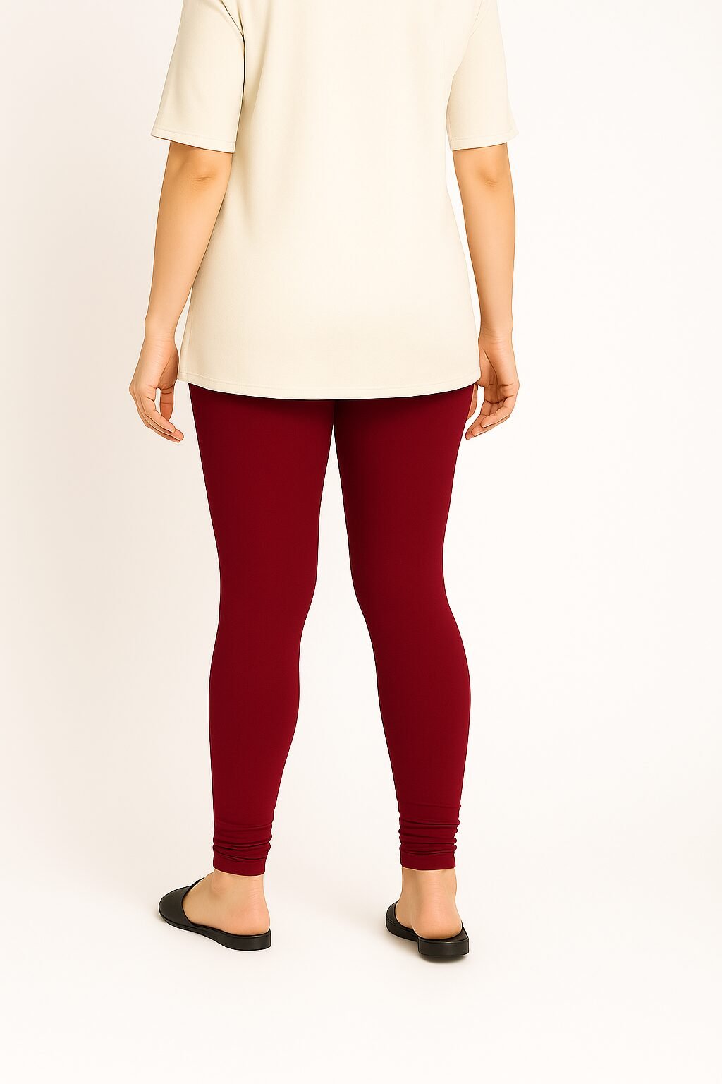 The Deep Red colour shade pairs beautifully with whites, blacks, beige, floral tops, and ethnic tops . Designed to move with you, these leggings stay in shape even after multiple washes. Whether you’re dressing up for a casual outing or styling for traditional events, these leggings bring confidence and charm to your look.