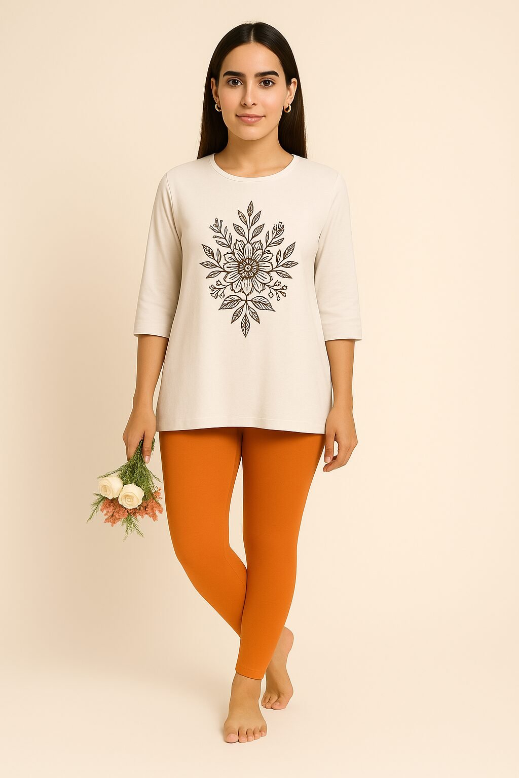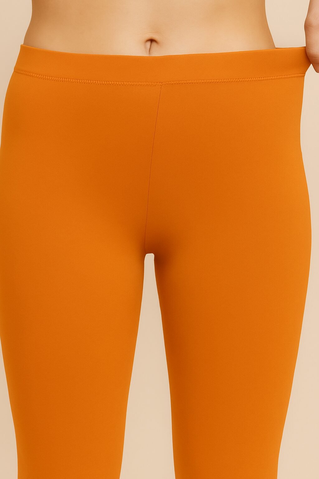 The rust orange Ankle colour shade pairs beautifully with whites, blacks, beige, floral tops, and ethnic tops . Designed to move with you, these leggings stay in shape even after multiple washes. Whether you’re dressing up for a casual outing or styling for traditional events, these leggings bring confidence and charm to your look.